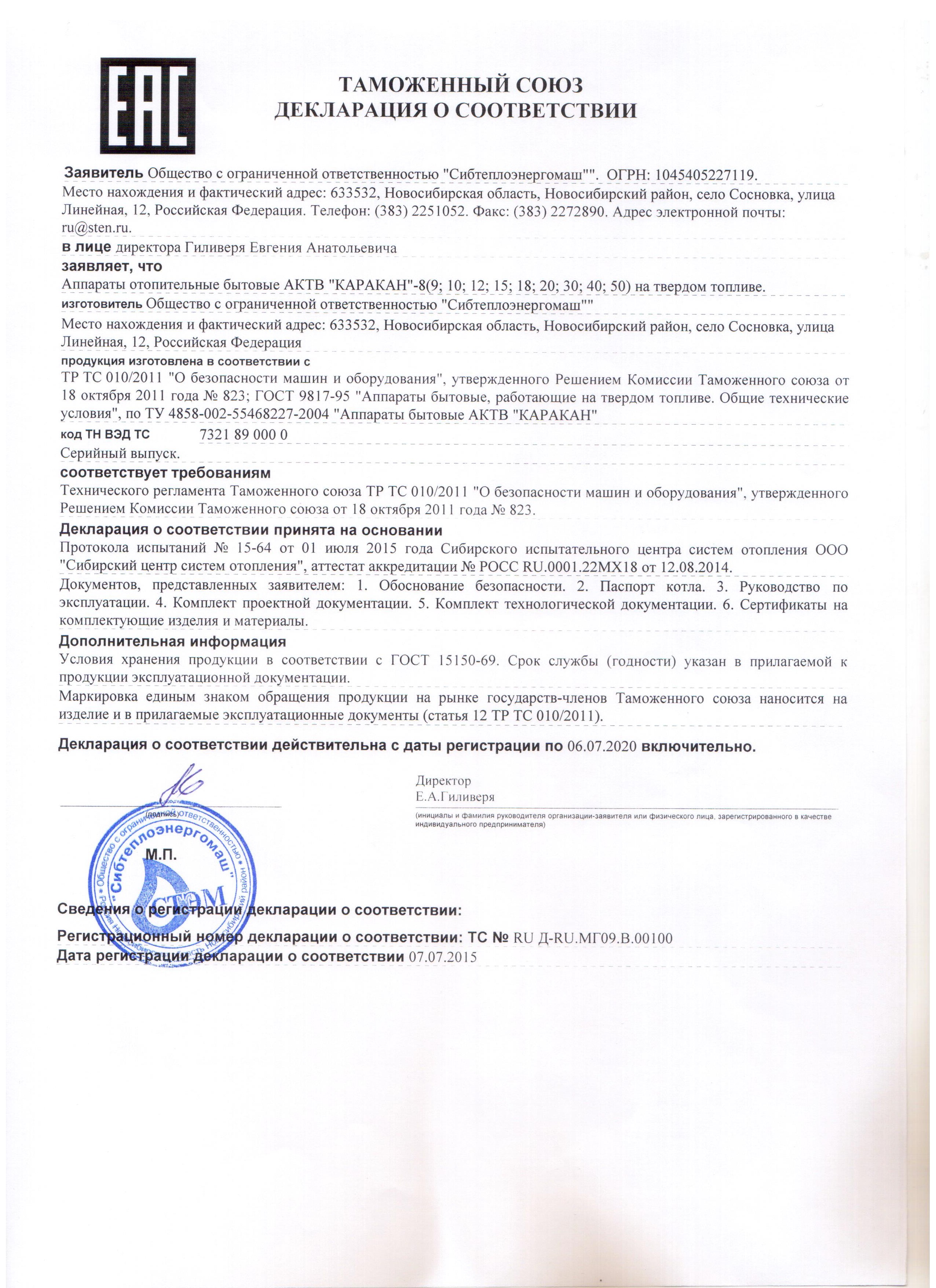 Твердотопливный котел Каракан-8 ТПЭ 3 имеет длинную топку (48,5 см), позволяющую топить как углем, так и дровами. Еще одна изюминка котла - вертикальный дымоход, вмонтированный в варочную панель. Для увеличения высоты котла используется специальная подставка. Её корпус выполнен в едином дизайне и снабжен выкатным ящиком. Подсоединение котла к кирпичной дымовой трубе производится через стальной переходник дымохода 7-11 КВ-ПГ. Этот переходник позволяет вывести дымоход не только назад, но и вбок.